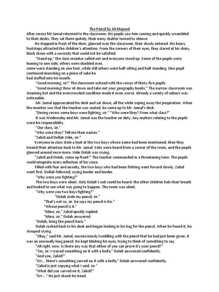 The Pencil By Ali Majod The Pencil By Ali Majod After Recess Mr Jamal Returned To The Classroom Studocu